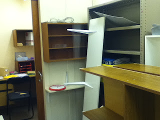 This is our compacy and bijoux office complete with desk and shelves. We've moved this around already but I'll post better quality photos tomorrow.